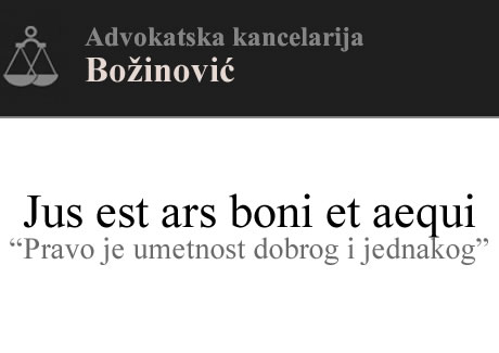 Advokatska kancelarija Božinović osnovana je 01.01.1995. godine u Beogradu i registrovana u Advokatskoj komori Beograda. Svojim klijentima, kako pravnim, tako i fizičkim licima, ova advokatska kancelarija pruža sve vrste advokatskih usluga.